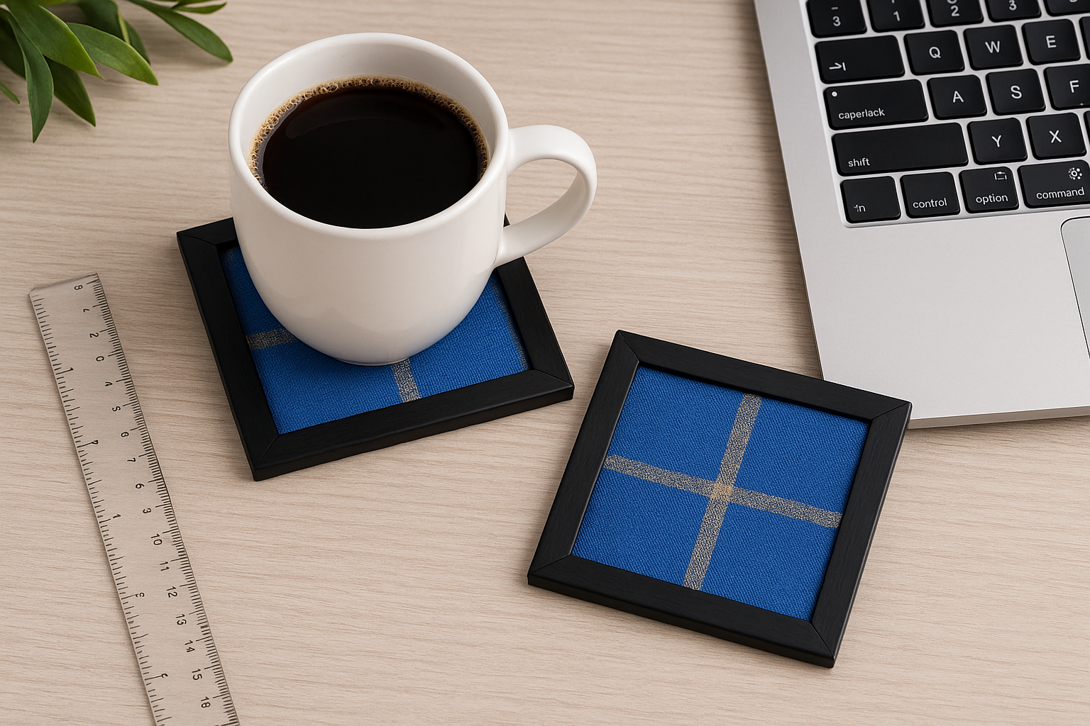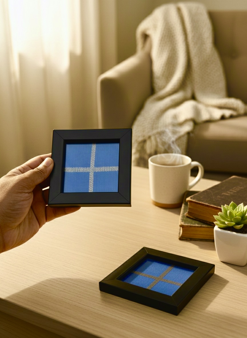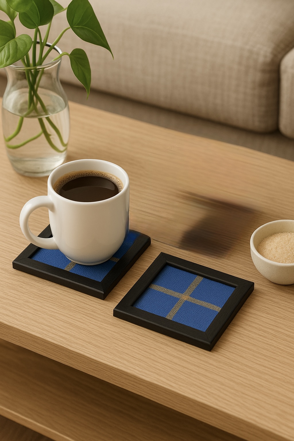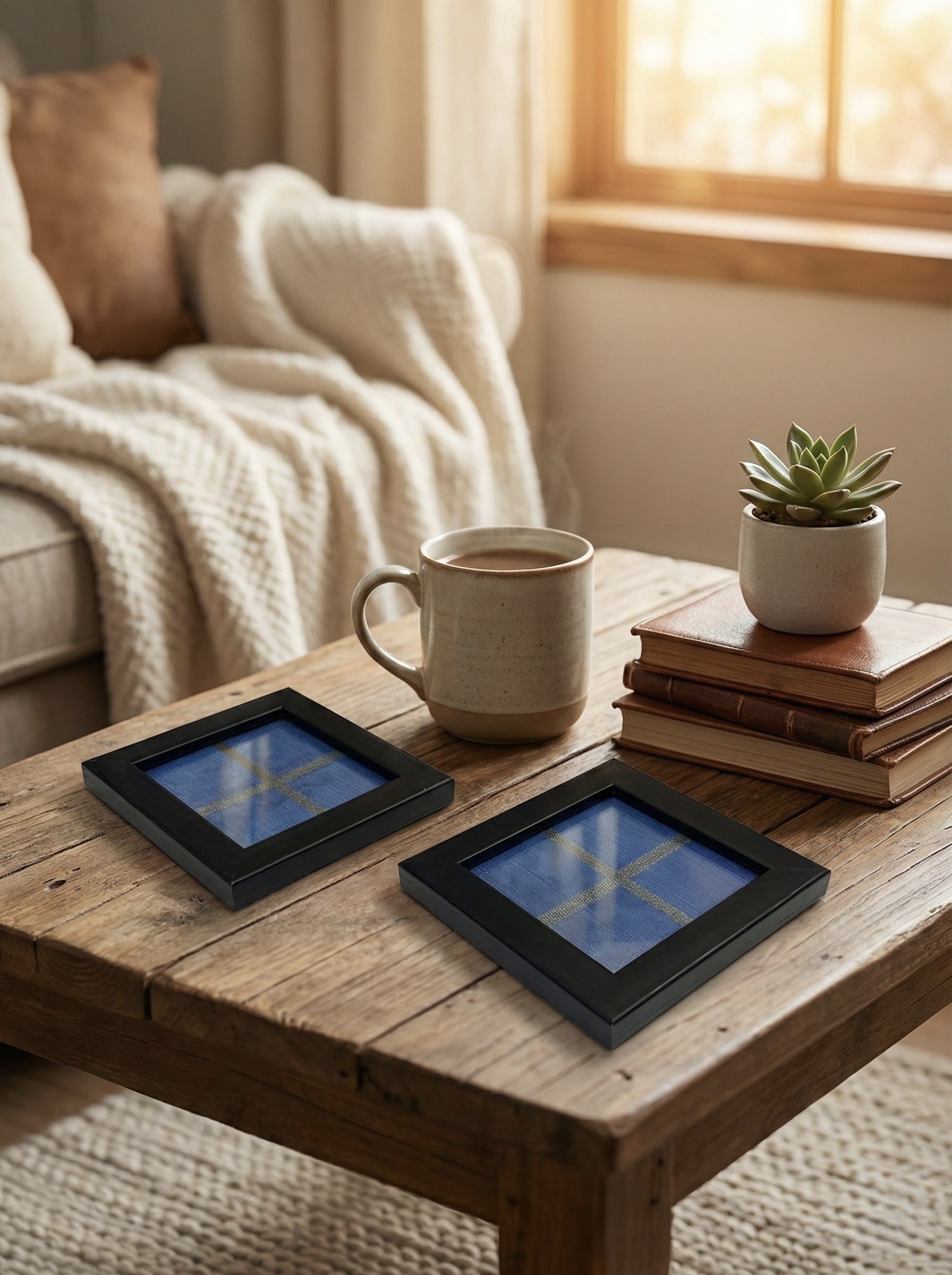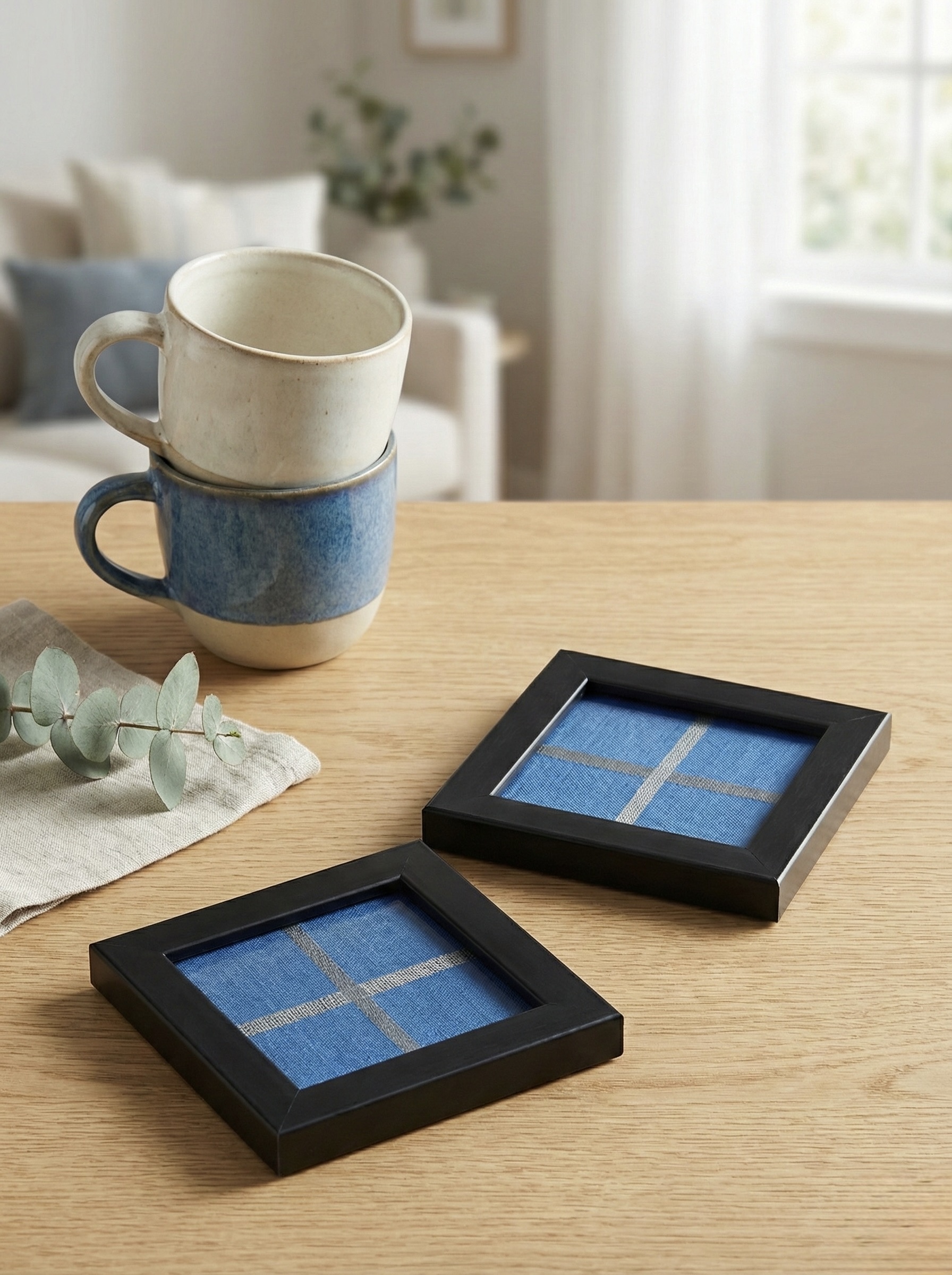 | Blue Framed Coasters | Coasters, Blue Silk Fabric Coasters |