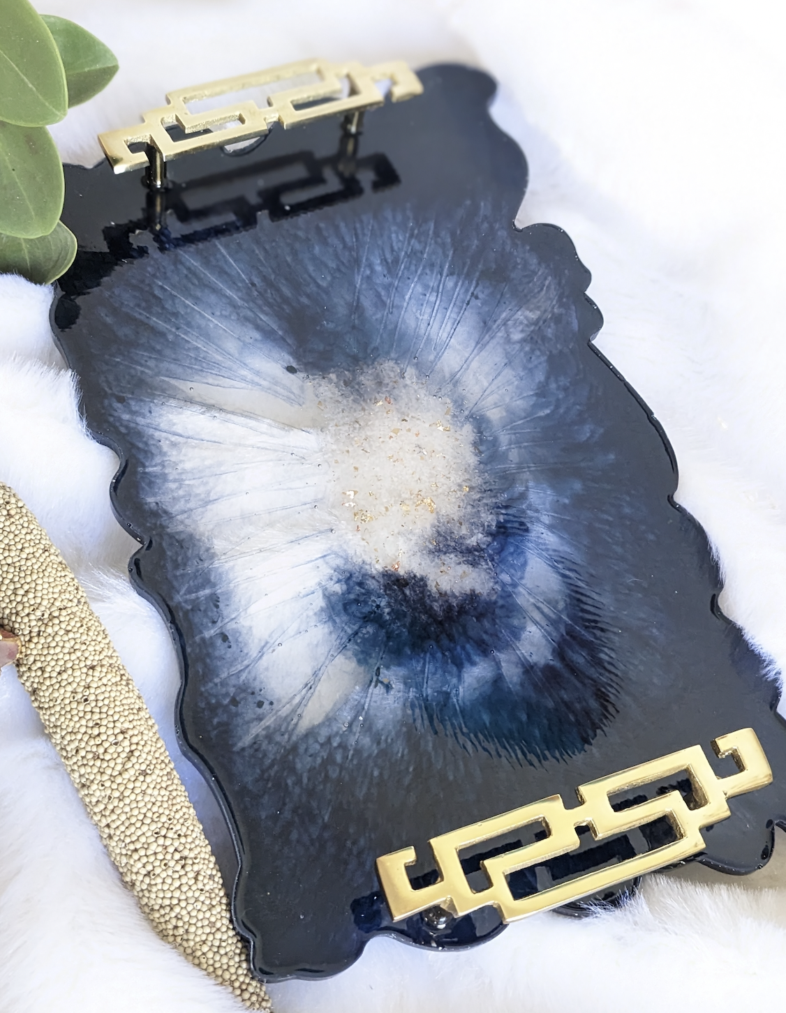 Enhance your home with our stylish resin tray, combining natural elegance and artistic design. Elevate your serving experience with this functional and versatile addition to your decor.