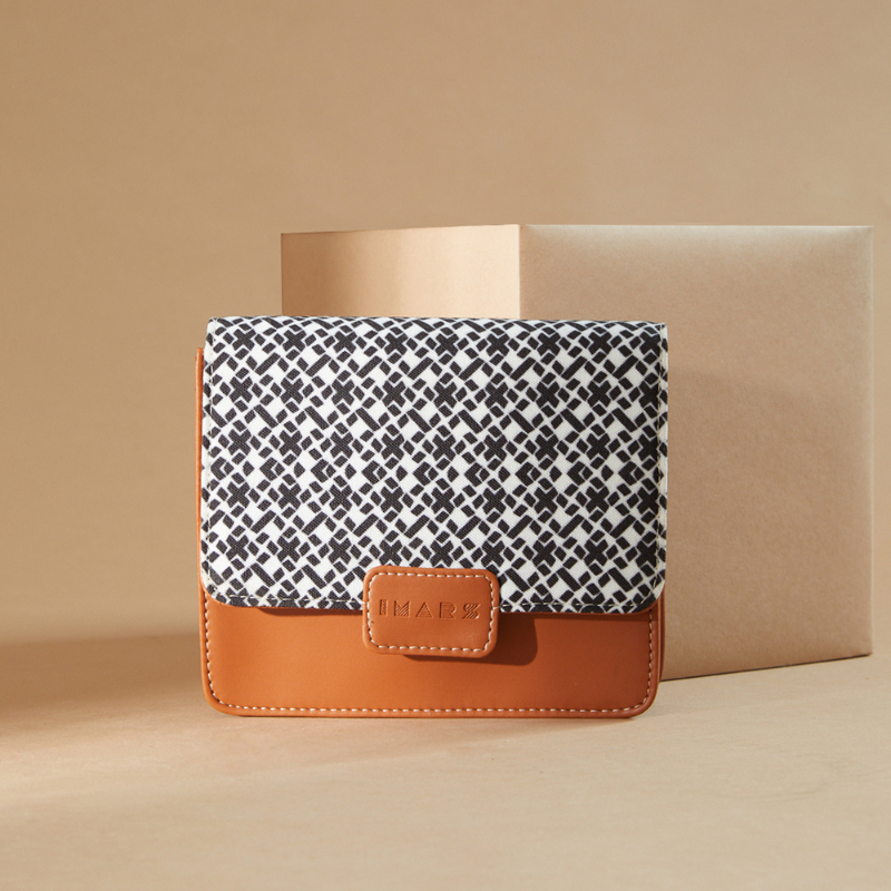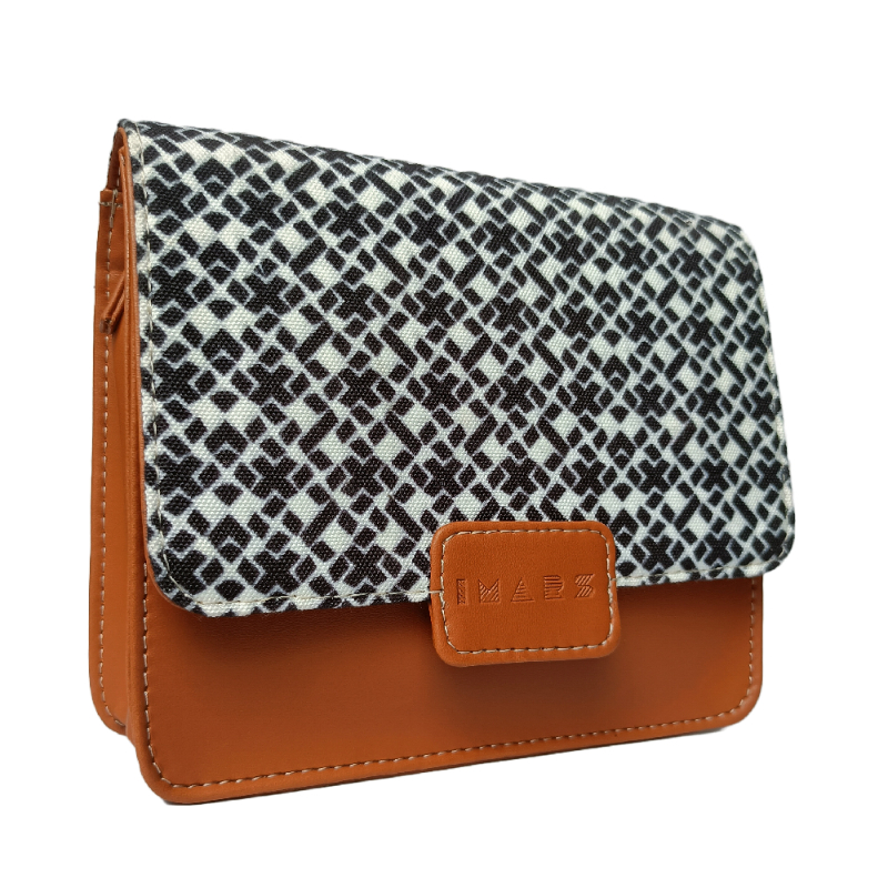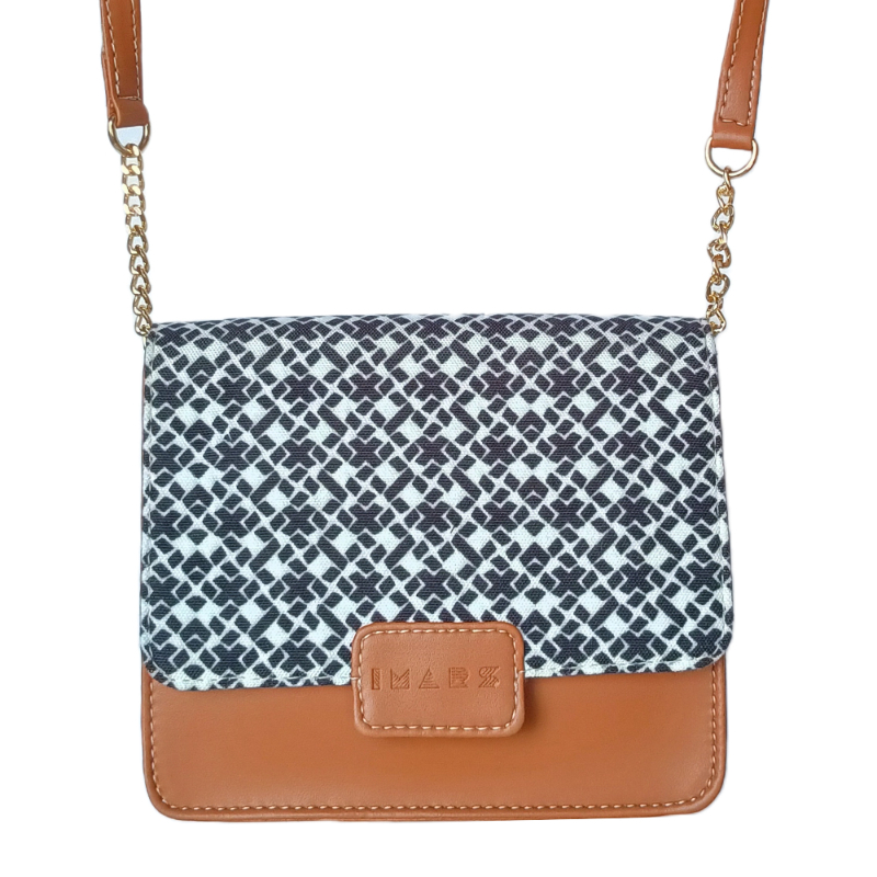This Handmade sling bag from IMARS will add a touch of chique vibes to your everyday soirees. Showcasing a geometric pattern for contemporary charm, it’s fashioned with a flap front which opens up to reveal a single compartment, spacious enough for all your essentials.