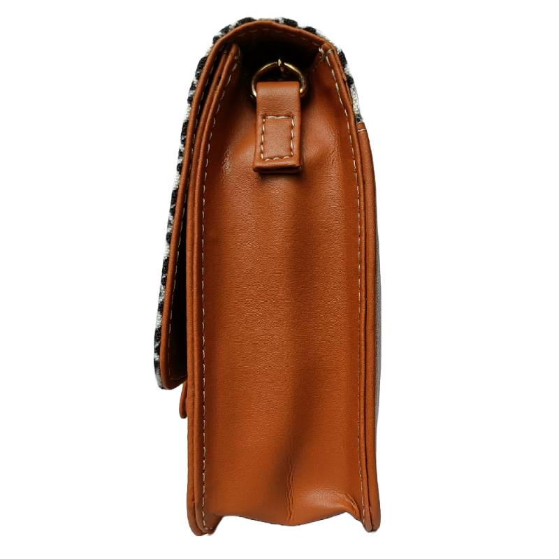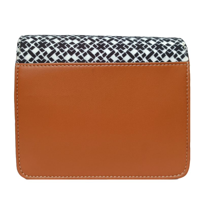 * Black- White Grometric print & Tan Leatherette