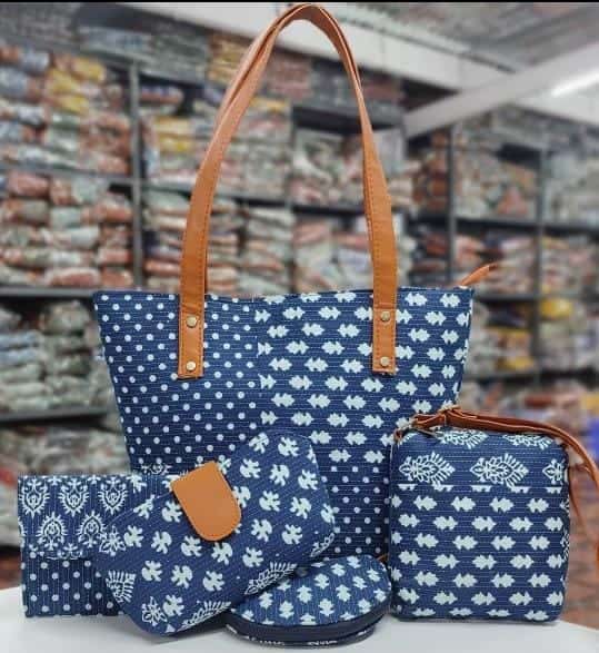 Ikkat Cotton Handcrafted Shoulder, Sling Bag , Clutch Blue Combo 5 Pieces